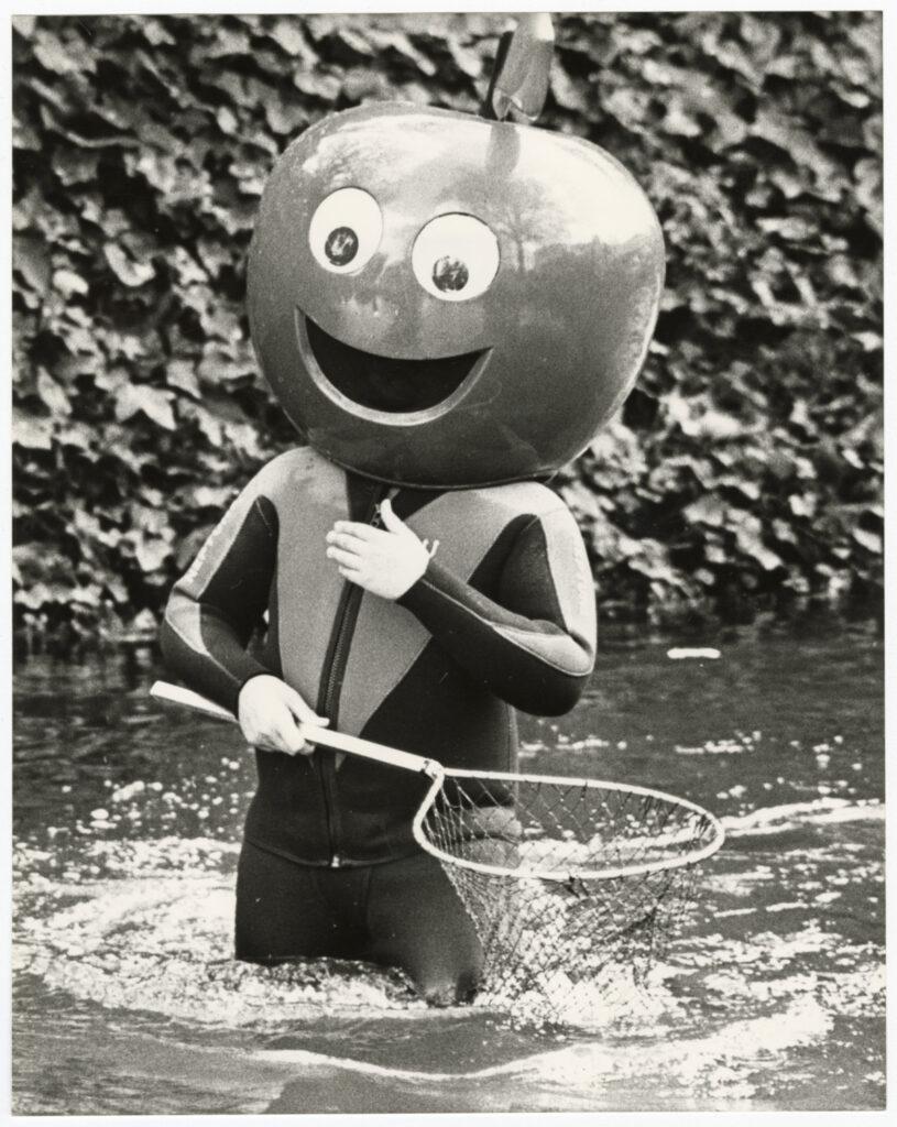 A boatload of “stewards” preceded the apples downriver but spent more time in the water than on it. The winning apple passed the finishing line at the Manchester Street bridge in a record 37min 27s, slicing more than a minute off last week’s time trial. J. G. Dennison, of Waimate, was judged the winner, although the Dennison apple was pipped at the post by two others. They belonged to a squash club member who had forgotten to put his name on the entry forms, and were disqualified.