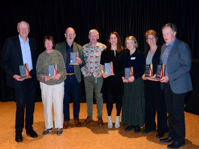 (L-R) Joanne Williams (and on behalf of Les Milne), Greg Atkins, Maree Smith, Nancy Wasley (together with Don Wasley), Paul Growcott, Murray Hay.