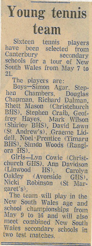 Sixteen tennis players have been selected from Canterbury secondary schools for a tour of New South Wales from May 7 to 21.